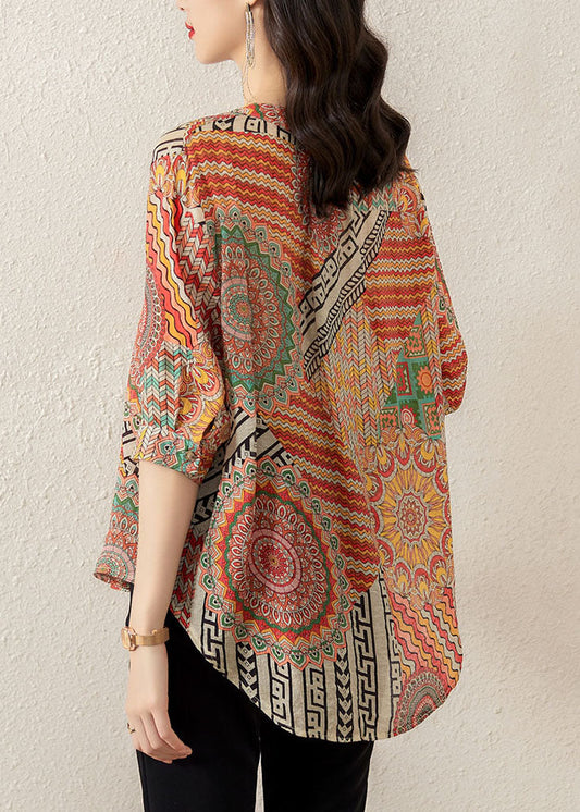 Plus Size Orange Ruffled Print Chiffon Shirt Top Spring LC0390