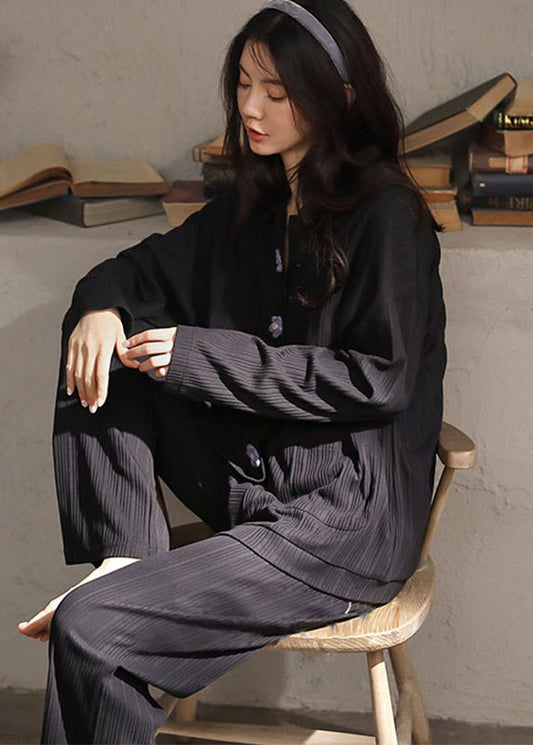 Plus Size Peter Pan Collar Striped Button Cotton Pajamas Two Pieces Set Long Sleeve LY2823