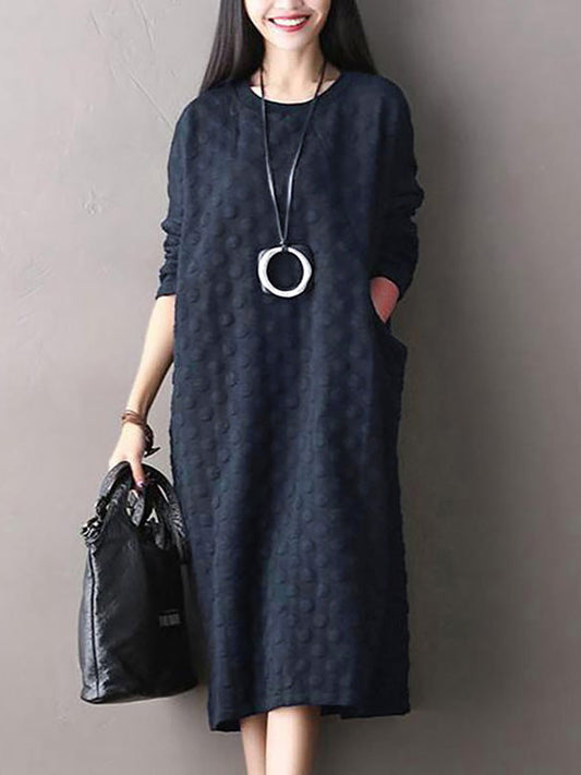 Plus Size Polka Dot Stretch Cotton Long Sleeve Dress AV1044