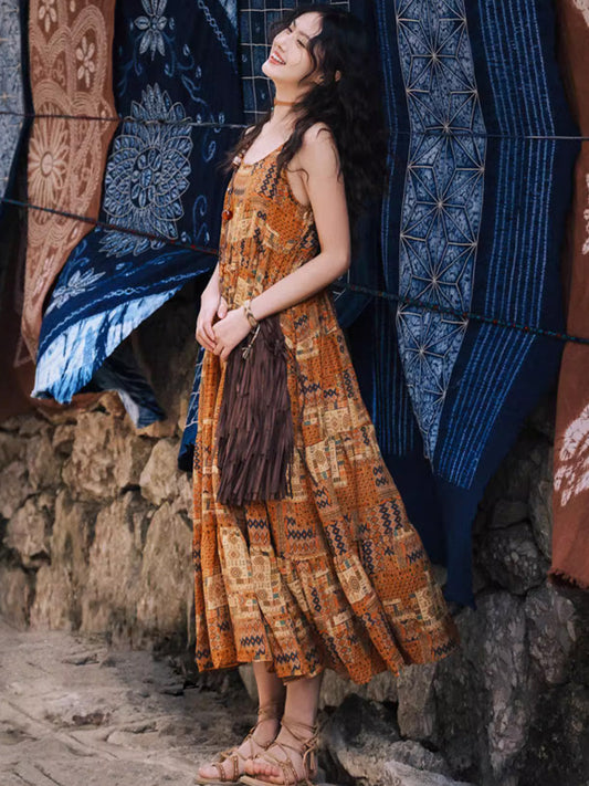 Plus Size Women Summer Vintage Spliced Maxi Dress LL053