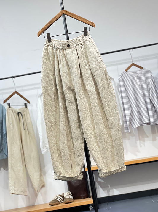 Plus Size Women Vintage Flower Jacquard Loose Pants KL1019
