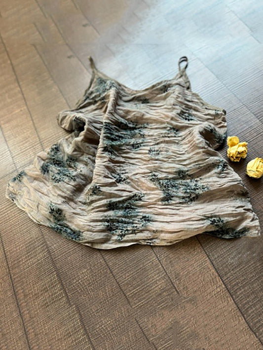 Plus Size Women Summer Vintage Tie-dye Spliced Ramie Vest LL055