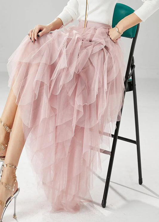 Elegant Pink High Waist Ruffles Tulle Skirt Summer ML1195