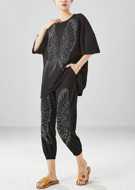 Italian Black Oversized Print Cotton Two Piece Set Women Clothing Summer LY6137