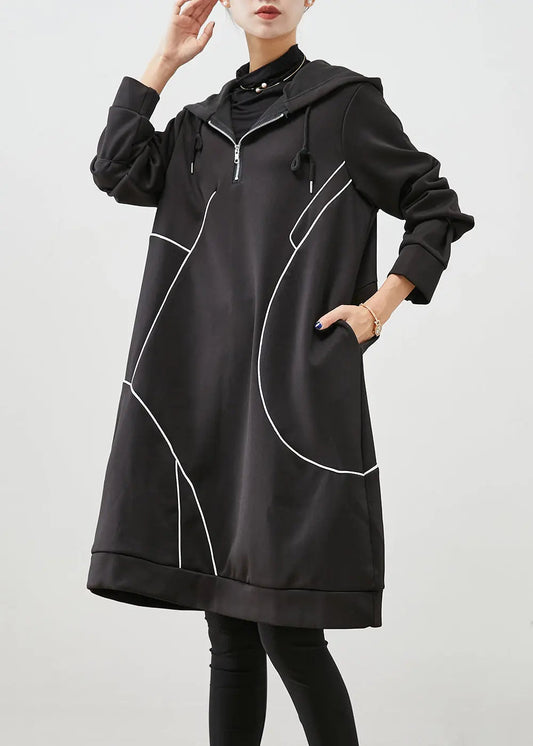 Italian Black Oversized Patchwork Cotton Sweatshirt Dress Fall ML1202