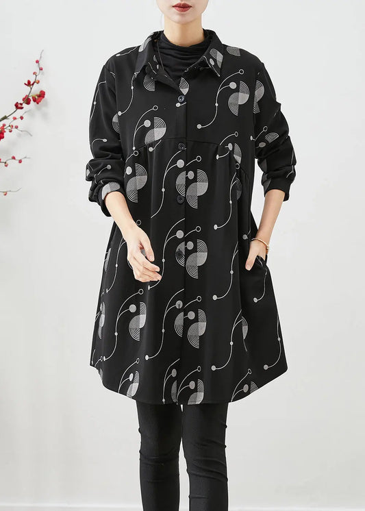 Italian Black Oversized Print Cotton Trench Fall ML3208