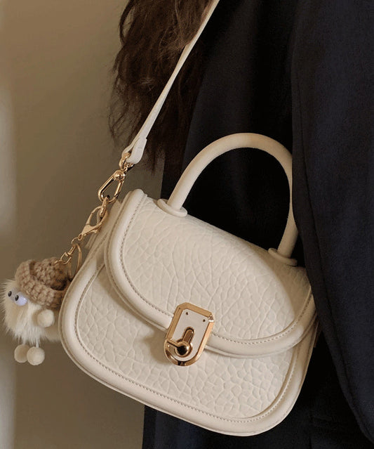Fashion Milk White Cute Little Doll Faux Leather Mini Tote Handbag MM003