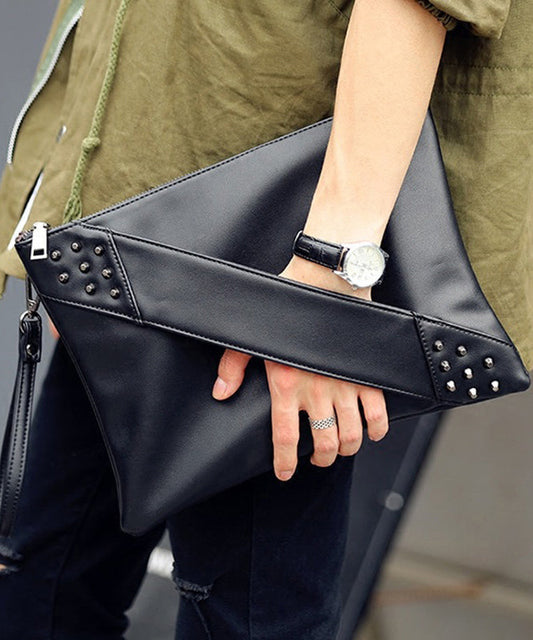 DIY Black Rivet Chain LinkedFaux Leather Satchel Handbag UU1091