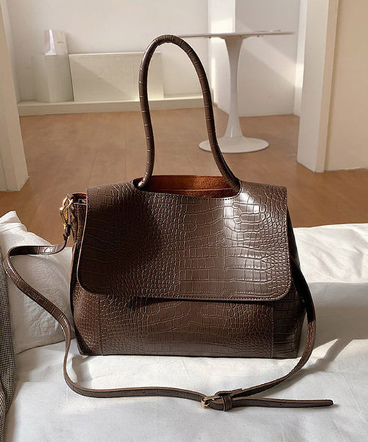 Women Brown Patchwork Faux Leather Satchel Handbag UU1084