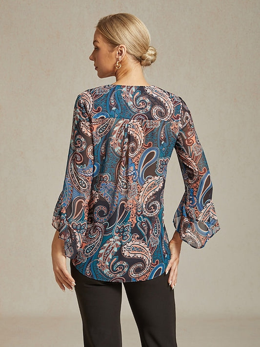 Women's Boho Shirt Blouse Ruffle Paisley Vintage Stylish