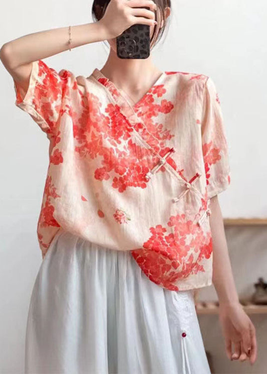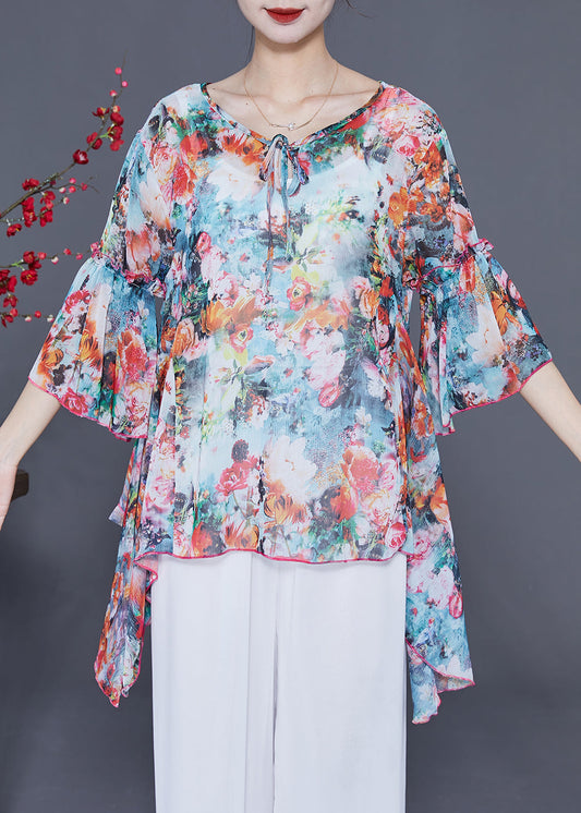 Boho Asymmetrical Design Floral Print Chiffon Shirts Flare Sleeve LY2414