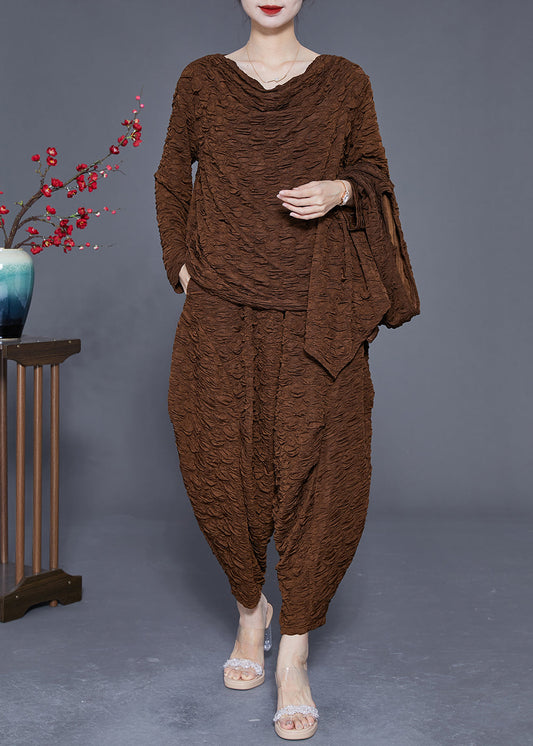 Boho Coffee Oversized Wrinkled Cotton Three Pieces Set Spring LY2328