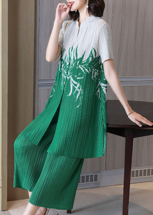 Boho Green Print Wrinkled Two Piece Set Women Clothing Summer LY2798