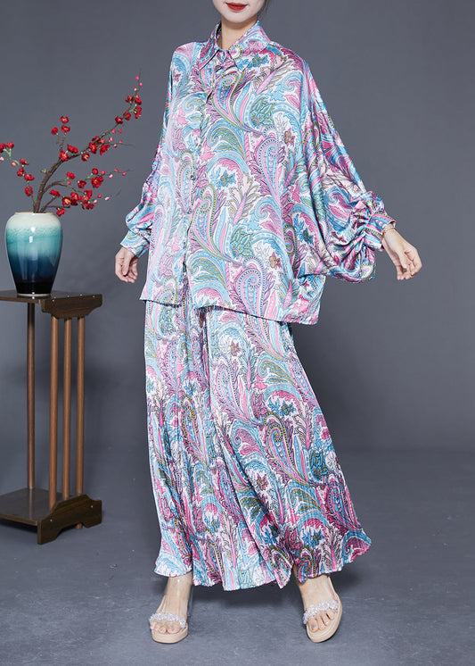 Boho Oversized Print Wrinkled Silk Two Piece Set Women Clothing Batwing Sleeve LY2892
