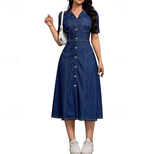 Women's Midi Dress Denim Dress Shirt Dress Casual Dress