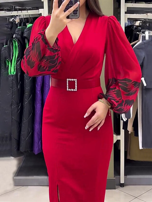 Women's Casual Dress Midi Dress Patchwork With Belt Casual