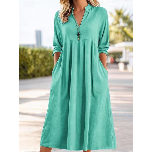 Women's A Line Dress Maxi Dress Pocket Basic Casual V Neck