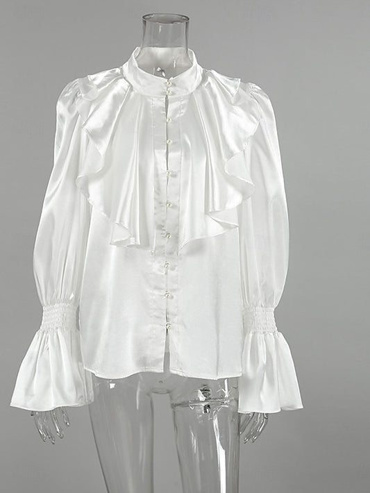 Women's Shirt Elegant Dressy Satin Top Ruffle Solid Color