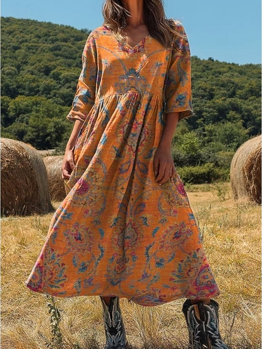 Women's Maxi Dress Linen Like Breathable Lightweight Kaftan