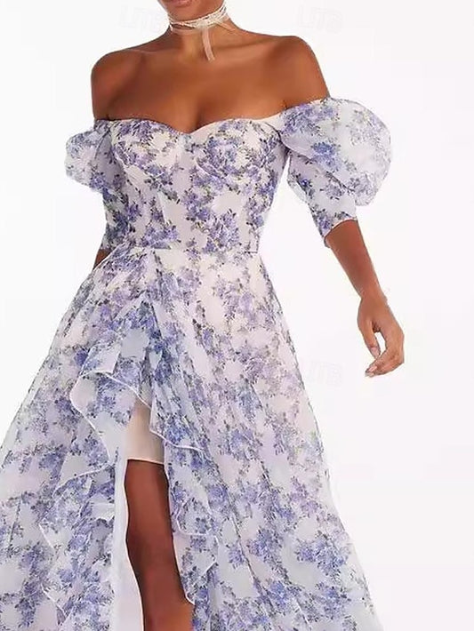 Women's Beach Dress Floral Print Asymmetrical Off Shoulder