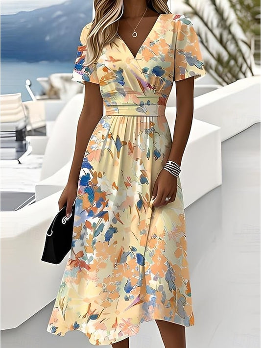 Women's Elegant Midi Dress A Line Dress Wrap Dress V Neck