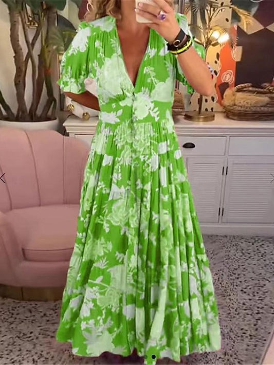 Women's Casual Dress Swing Dress Floral Print V Neck Midi