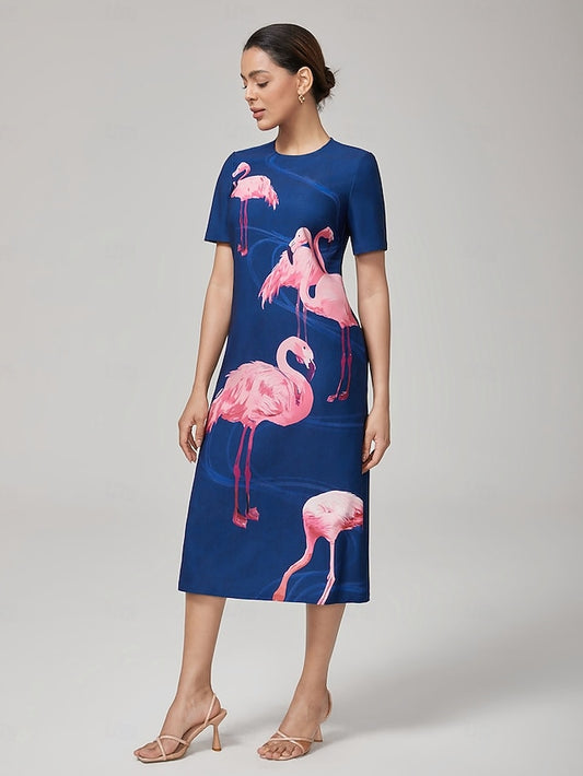 Women's Casual Dress Royal Blue Short Sleeve Flamingo