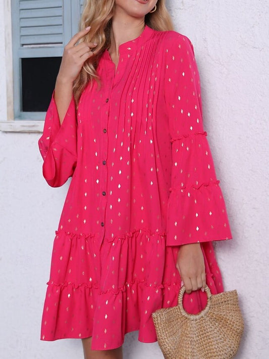 Women's Geometric Stand Collar Mini Dress Long Sleeve