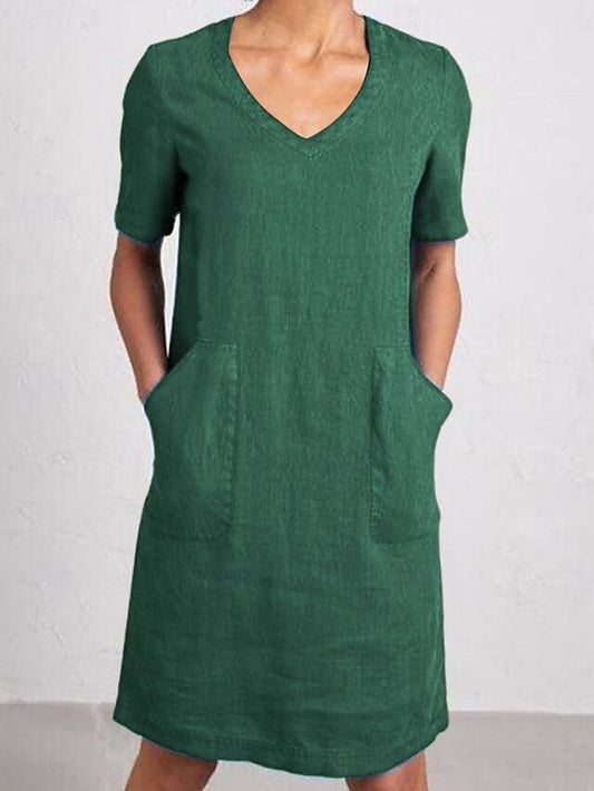 Women's Casual Dress Mini Dress Pocket Casual V Neck Short