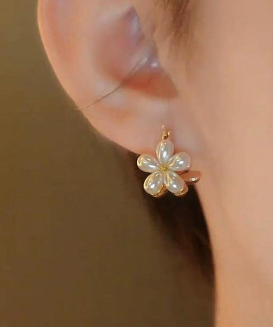 Fashion Gold Sterling Silver Alloy Pearl Hoop Earrings YX023