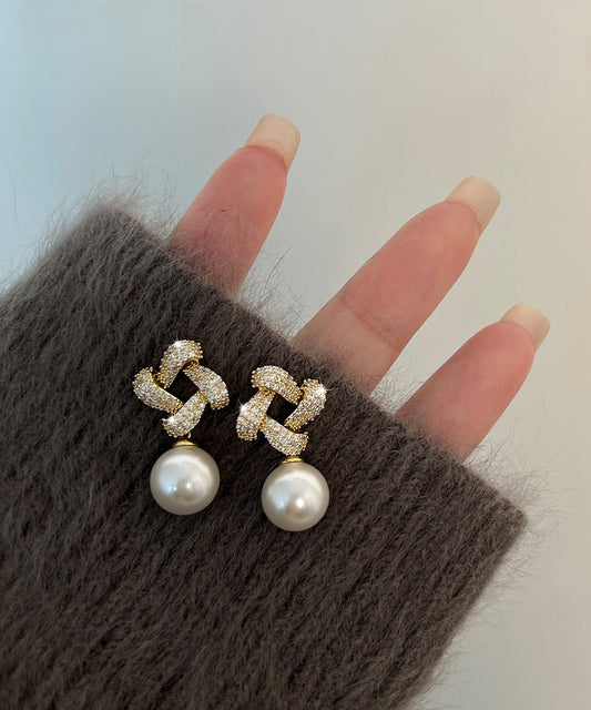 Fine Gold Copper Overgild Zircon Square Pearl Drop Earrings YX014