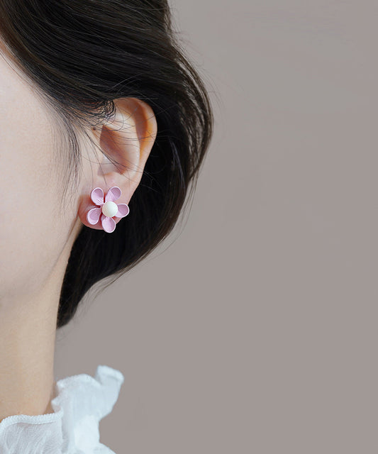 Stylish Pink Sterling Silver Alloy Floral Stud Earrings YZ003