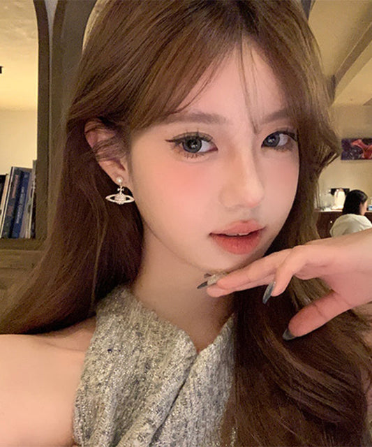 Vogue White Copper Zircon Pearl Planet Drop Earrings YX018