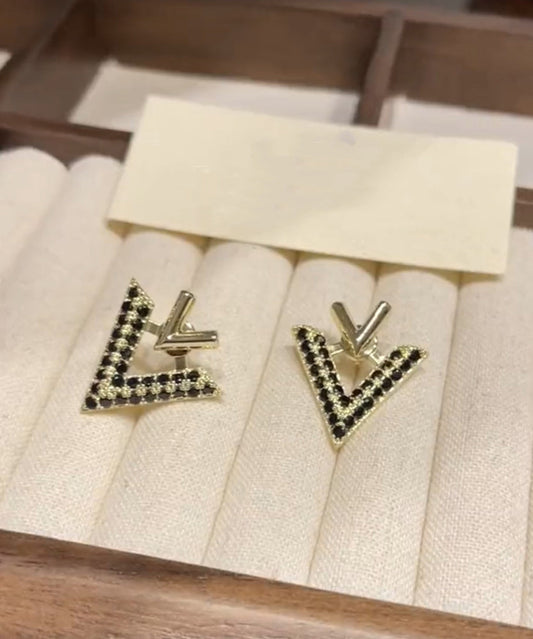 Beautiful White Copper Zircon Graphic V Shape Stud Earrings YX021
