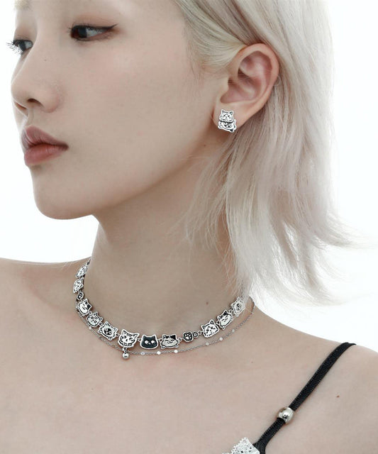 Bohemian Stainless Steel Silk Cat Necklace Double-Layer Graffiti