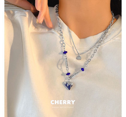 Heart Pendant Stainless Necklace Layered Steel Glaze