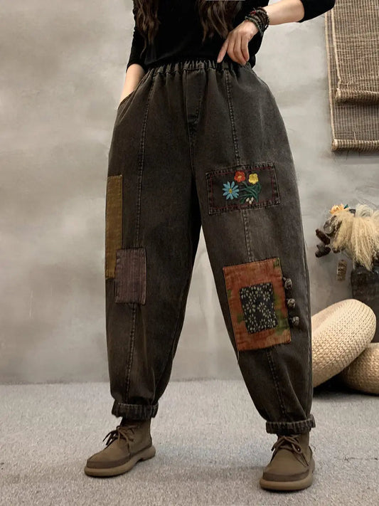 Women Patch Denim Harem Pants