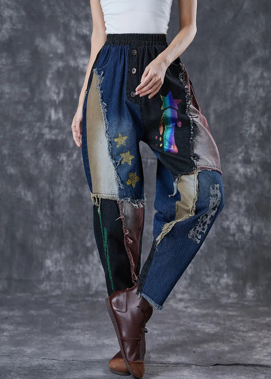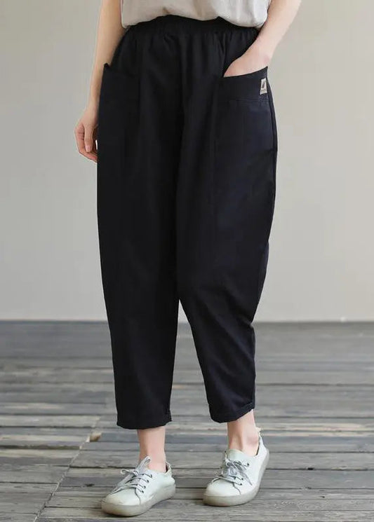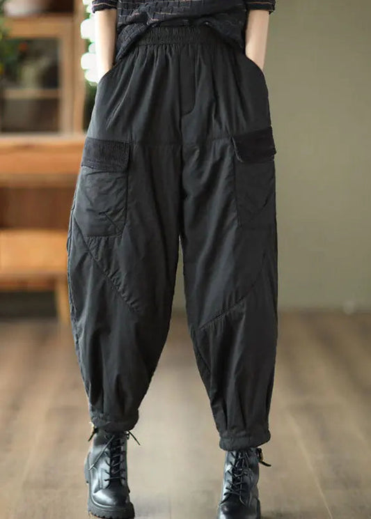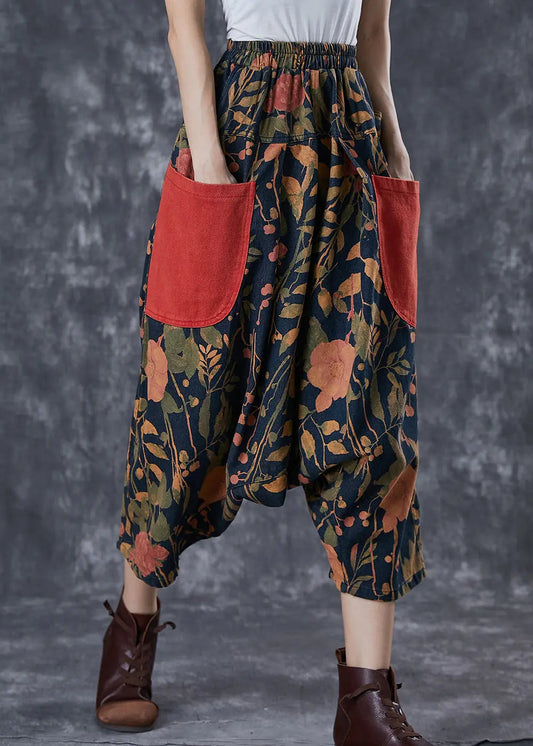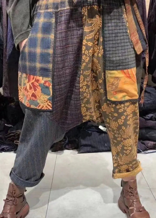 Vintage Plaid Pockets Elastic Waist Patchwork Cotton Harem Pants Fall ML3364