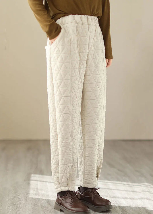 Women Khaki Pockets High Waist Warm Fleece Pants Fall TU032