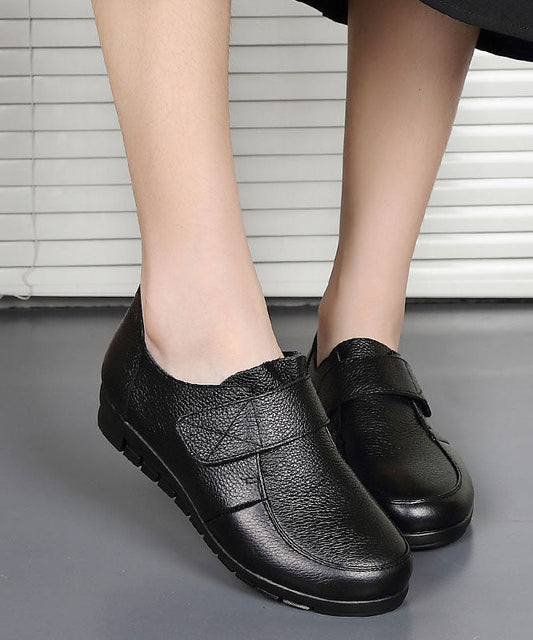 Retro Black Flats Cowhide Leather Buckle Strap Flat Shoes LY0227