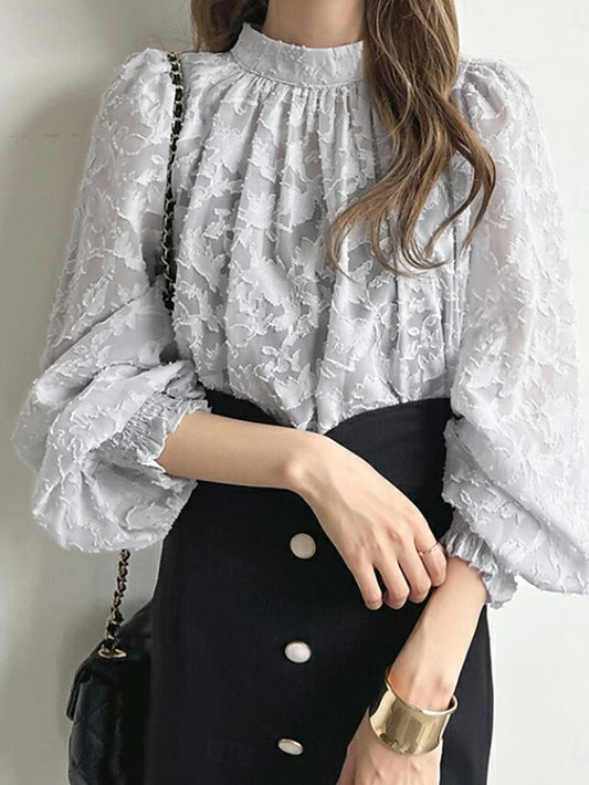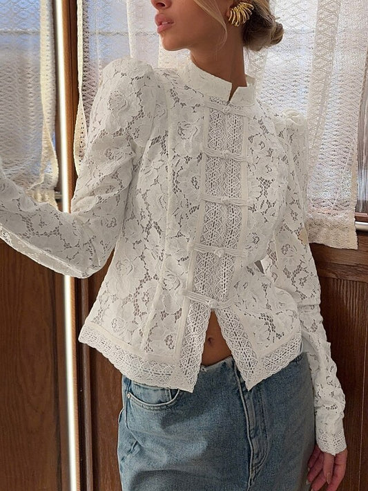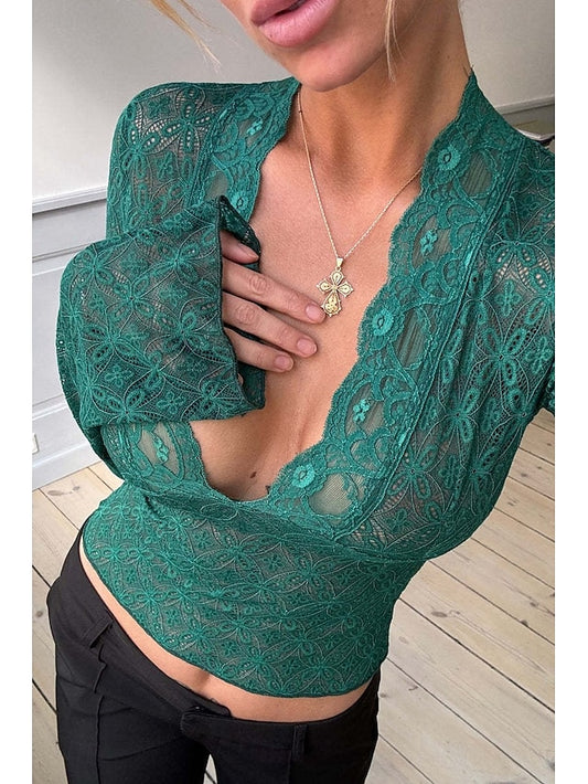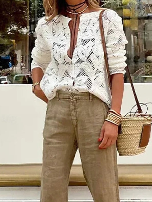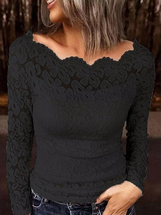 Women's Blouse Lace Solid Color Stylish Casual Long Sleeve