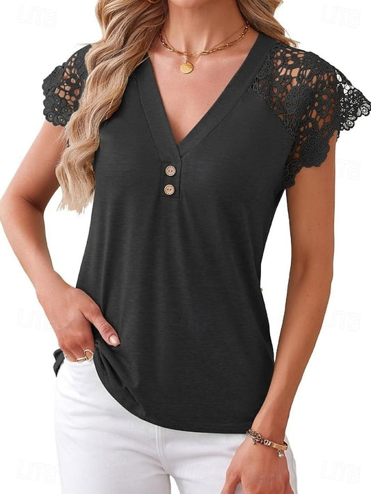 Women's Summer Tops Blouse Lace Tops Lace Patchwork Eyelet