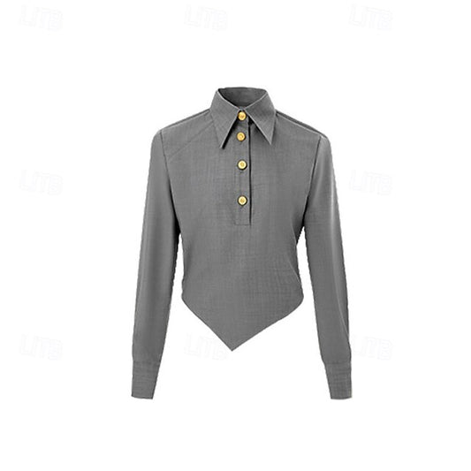 Women's Shirt Elegant Satin Top Blouse Buttons Plain