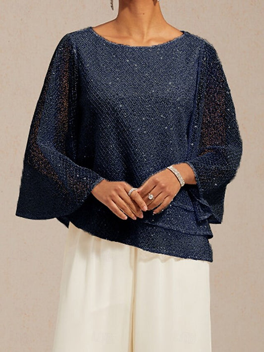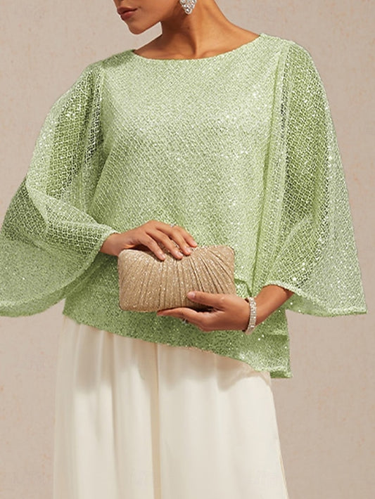 Women's Blouse Lace Tops Sequins Illusion Elegant Stylish