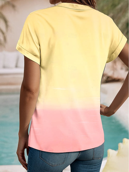Women's Shirt V Neck Button Down Blouse Summer Tops Ombre