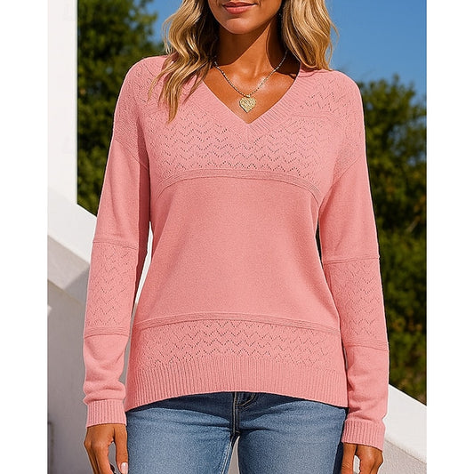 Women's Knit Shirt Pullover Sweater Hollow Long Sleeve Top
