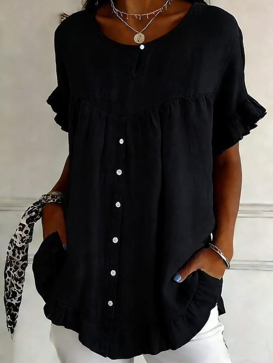 Women's Shirt Cotton Linen Shirts Blouse Ruffle Shirt Plain