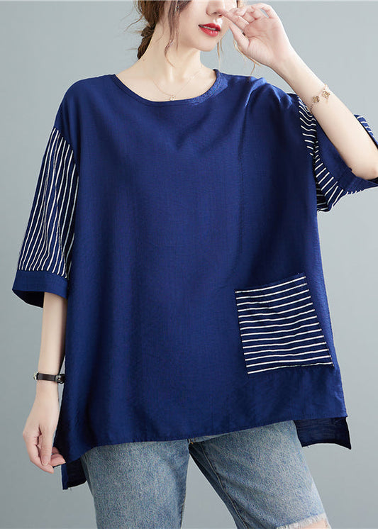 Handmade Blue Striped Asymmetrical Design Cotton Blouse Tops Spring LY2087
