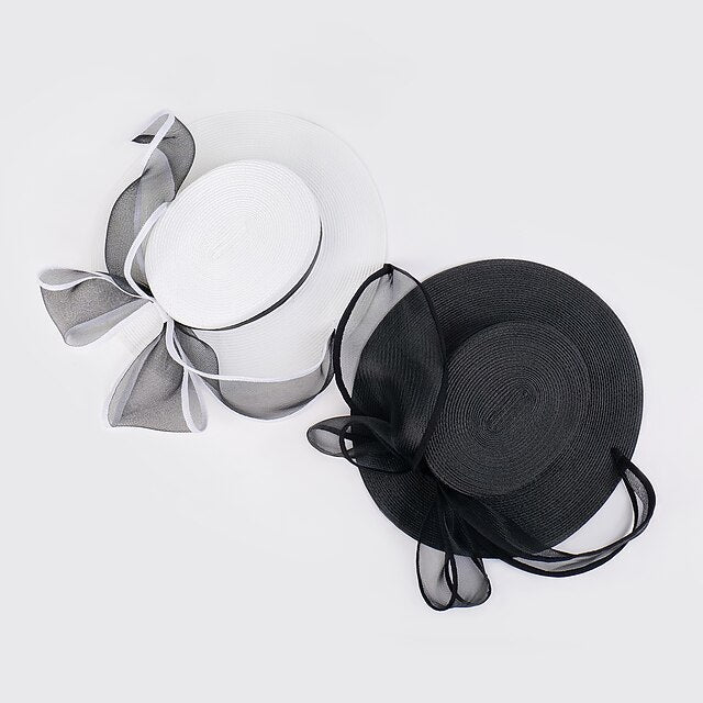 Gender: Women's, Material: Polyester, Net, Tulle, Style: Wedding, British, Occasion: Ladies Day, Tea Party, Category: Hats, Quantity: 1PC, Theme: Holiday, Wedding, Fashion, Vintage Theme, Embellishment: Bowknot, Head Circumference (cm): 53-57 , M:53-57, Tips: Size adjustable, Width (cm): 37, Hats Category: Top Hat, Saucer Hat, Sun Hat,