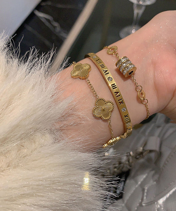 Vogue Gold Stainless Steel Alloy Zircon Graphic Four Leaf Clover Charm Bracelet Three-Piece Set